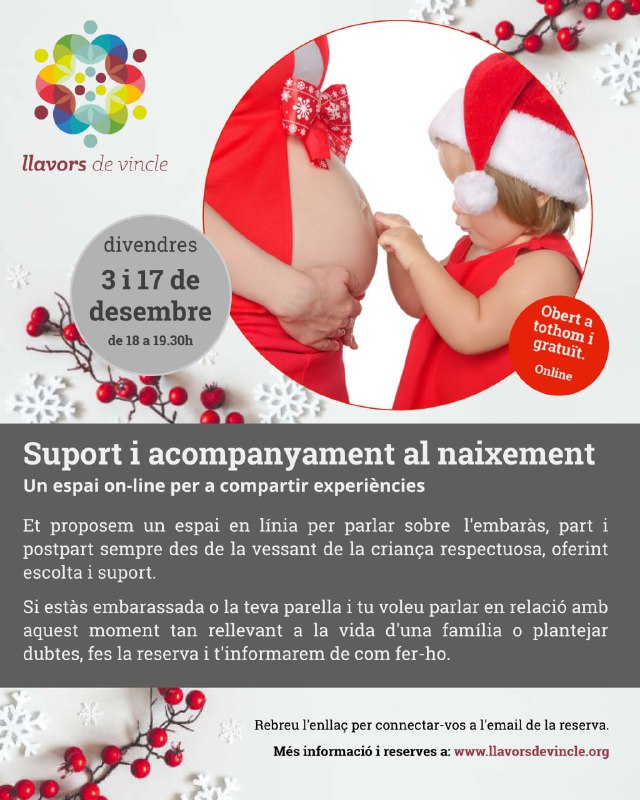 Et proposem un espai per parlar al voltant de l’embaràs, part i postpart sempre des de la vessant de la criança respectuosa, oferint escolta i suport.